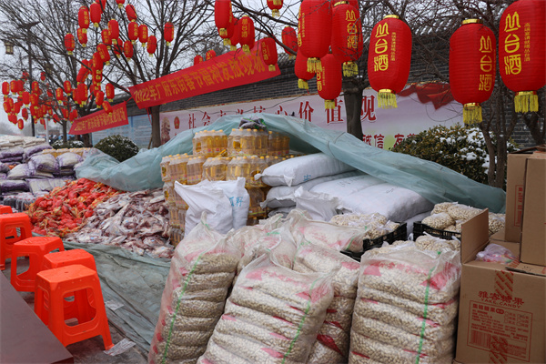 1月25日,永年区广府古城东街村村民在村委会门口上排起了长龙队,甘露寺广场上亦是搭起了舞台,台下坐满了70岁以上老人,现场每一个人们脸上都洋溢着灿烂的笑容。东街村委会门口两旁,整齐地码着米、面、油、肉、糖等十几种年货,今年是东街村党支部书记宋福如为村民置办年货的第十三个年头。据悉,今年为村民置办的年货种类达12样之多:2斤带鱼、1只白条鸡、2斤猪肉、1桶色拉油、1瓶香油、20斤大米、20斤精粉、10斤饺子粉、1袋糖块、1袋瓜子、1袋花生、1袋粉条,让全村人过春节不用再花一分钱。在保证村民日常需求之外,让村民新年品尝新味道,让东街村新年充满新气象!